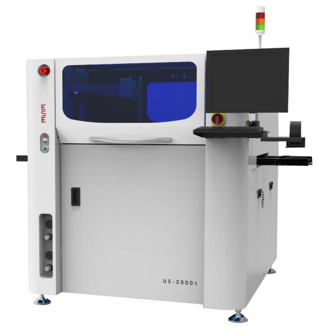 ESE 비전시스템과 고성능 CCD카메라(4개의 LED lights_3개의 LED는 보드인식, 1개의 LED는 스텐실 인식. FOV 11 X 8mm) 적용으로 보드와 스텐실 마크 인식을 동시에 진행하며, 기본적으로 적용된 2D검사 프로그램으로 인해, 보다 효율적인 설비 운용과