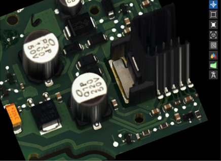 3D AOI의 가장 난제중의 하나로 언급되어지는 큰 부품이나 높은 부품들에 의해 카메라나 센서 시야가 가려져 이미지 측정이 불가능 한 경우에도 SQ3000은 뛰어난 성능을 발휘한다고 한다. 실제 제시된 이미지를 보면 주변의 높은 부품이 있음에도 불구하고, 높은 부품들 사이의 이미지가 뚜렸하게 측정되어 이미지화 된 것을 확인 할 수 있다.