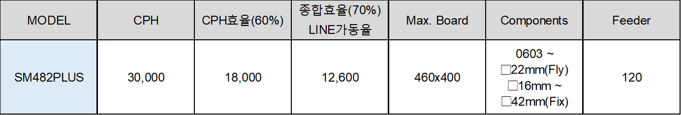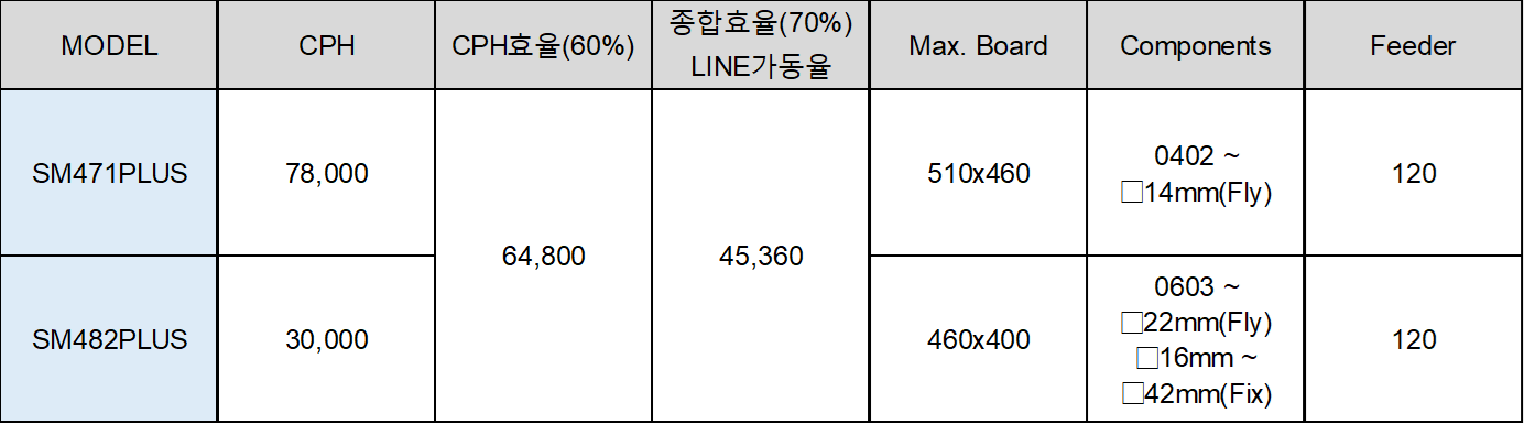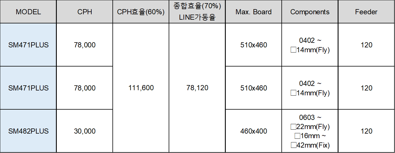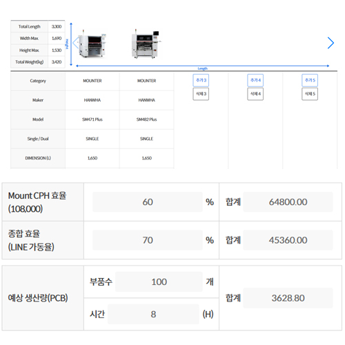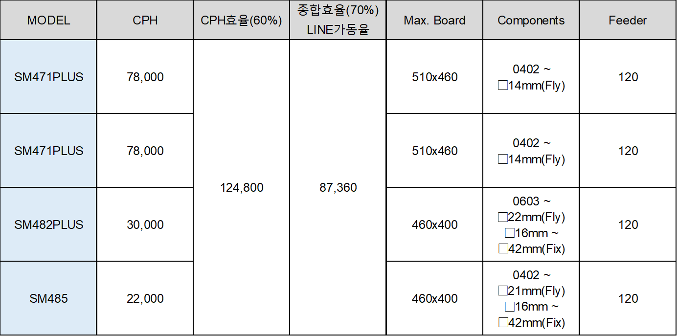 HANWHA SM411 Series SMT line 예상 CAPA.