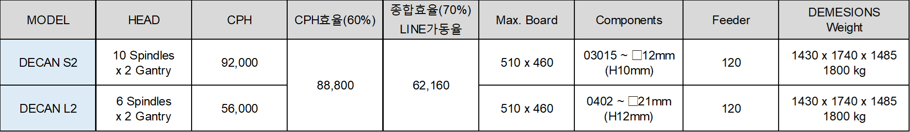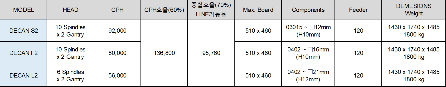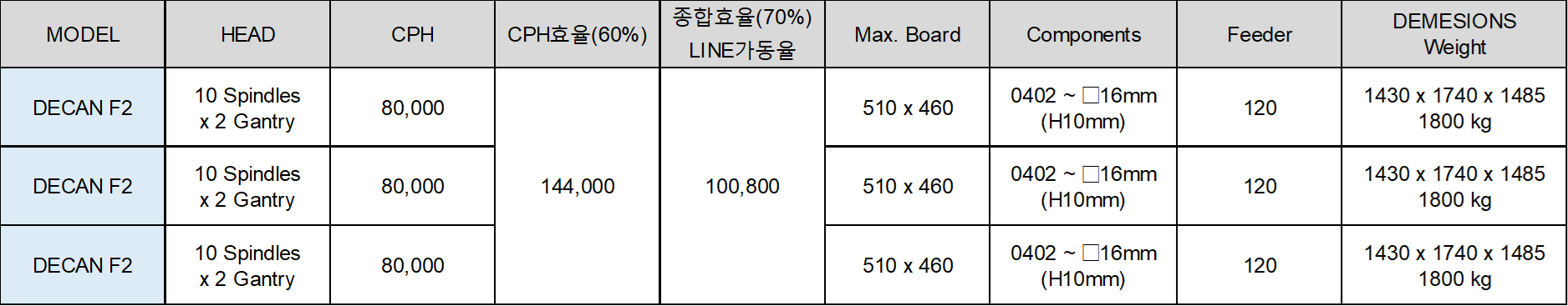JUKI MOUNTER 설비의 기본 스펙으로 비교하고, 예상 LINE을 구성해보세요.