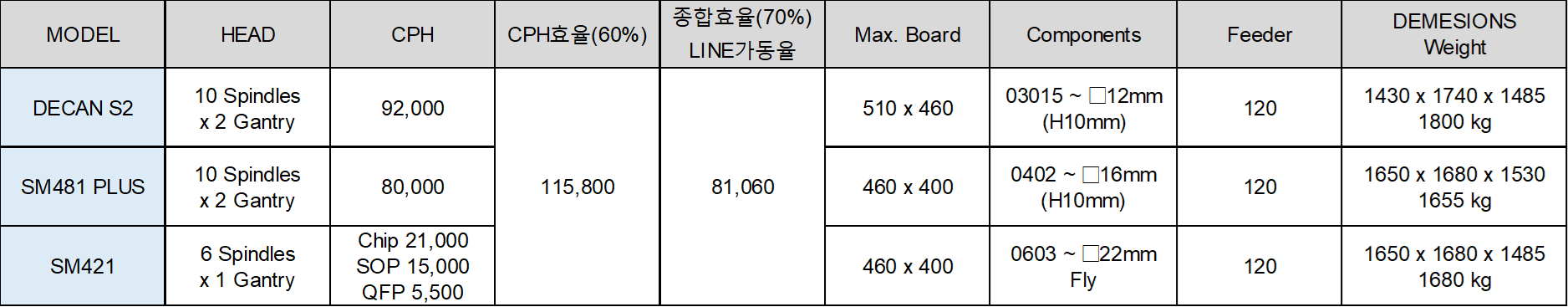 HANWHA SM411 Series SMT line 예상 CAPA.