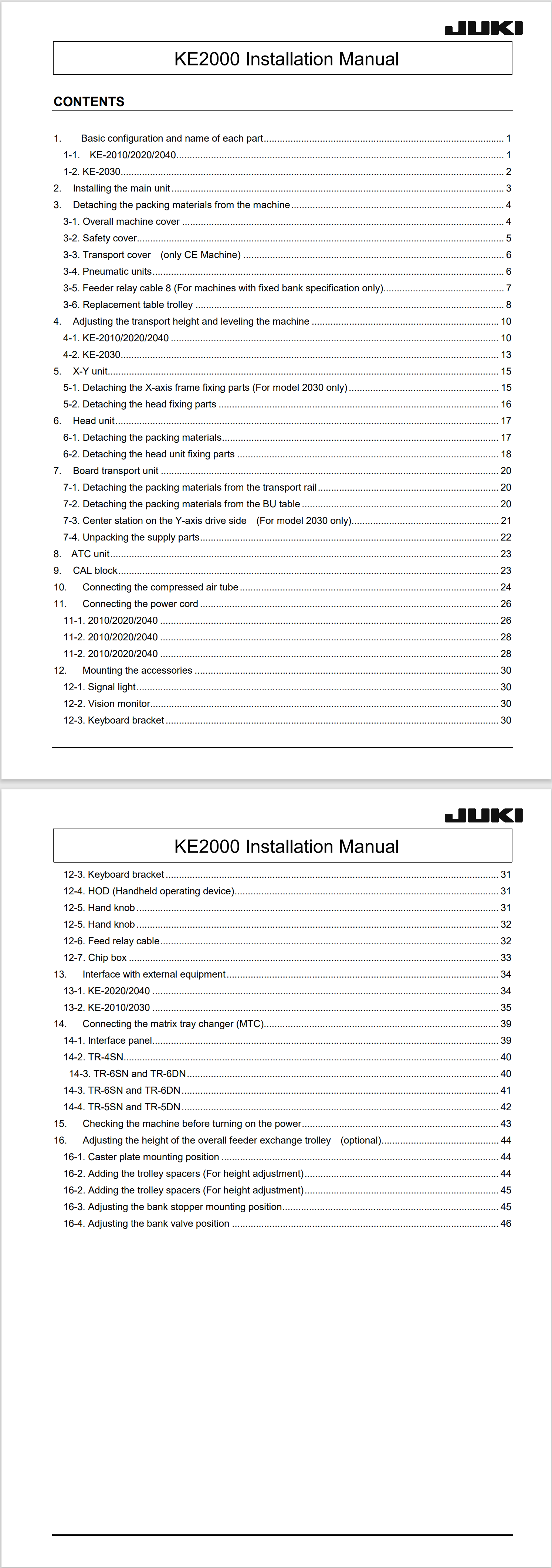 KE-2010, KE-2020, KE-2030, KE-2040 Installation Manual 자료입니다.
