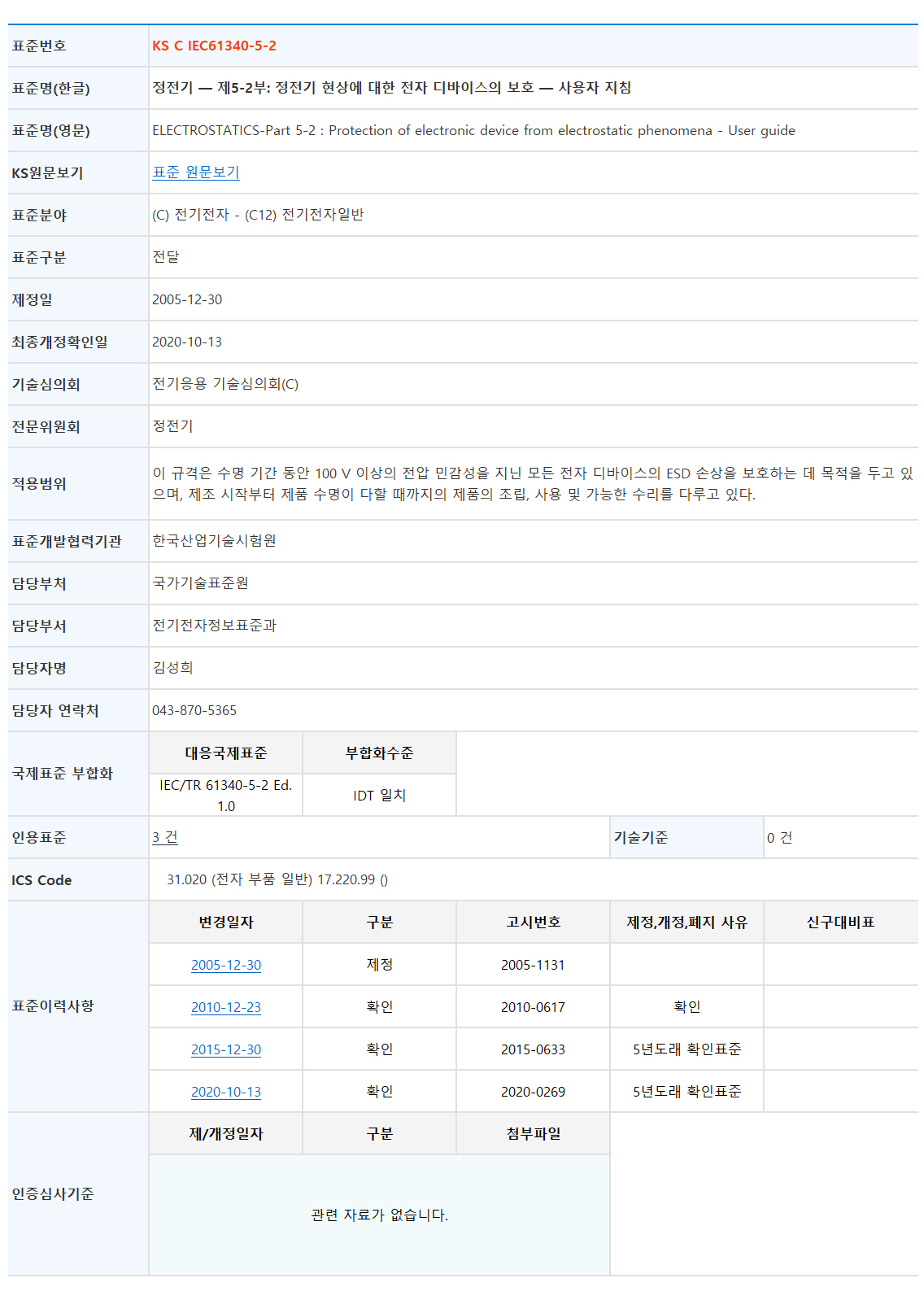 정전기 — 제5-1부: 정전기 현상에 대한 전자 디바이스의 보호 — 일반 요구사항