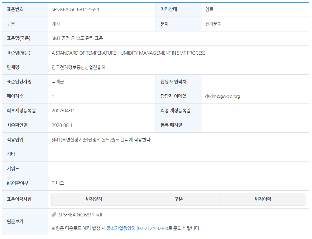 자료 링크 : SMT 공정 온 습도 관리 표준