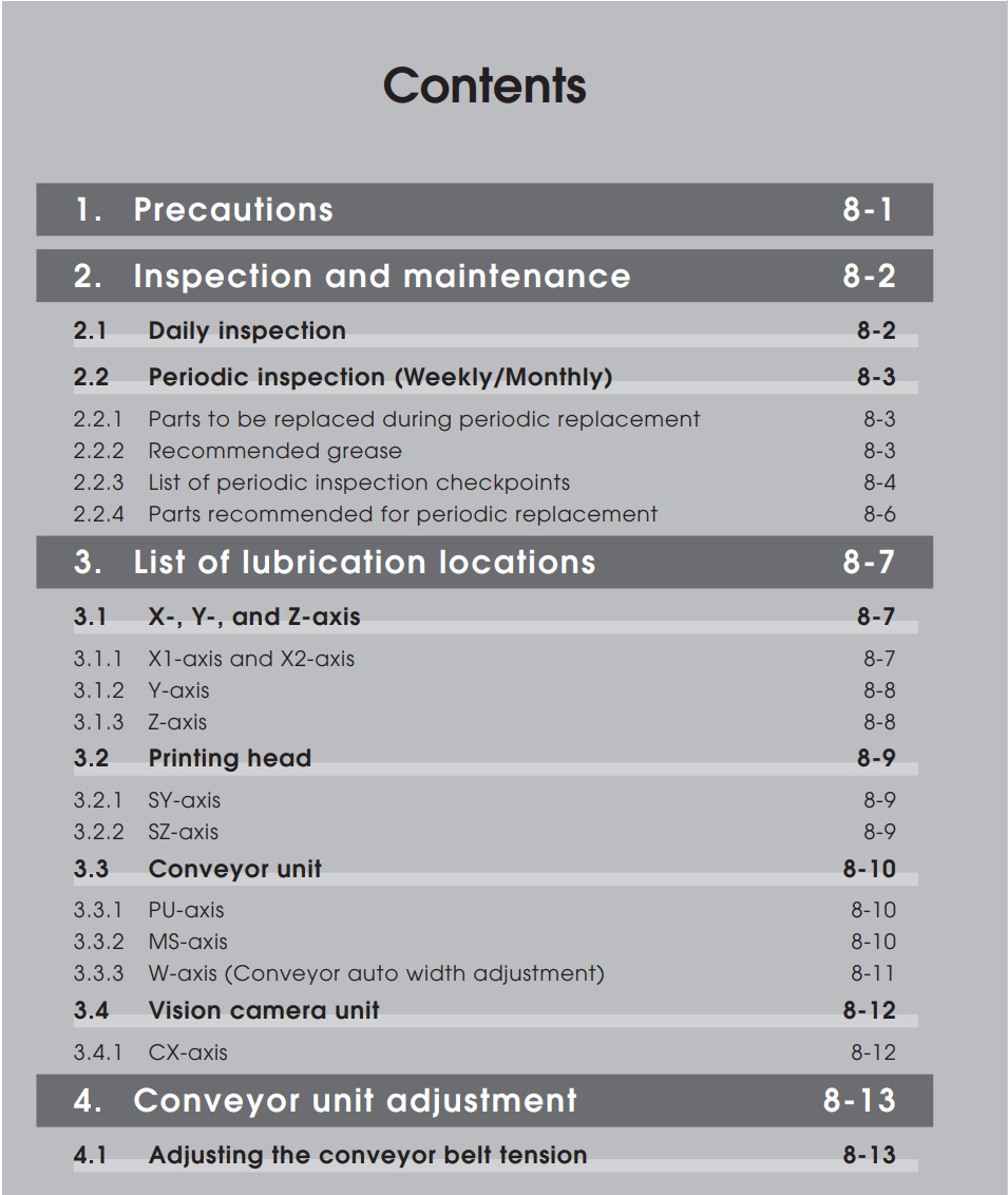 Chapter 8 Inspection and maintenance
