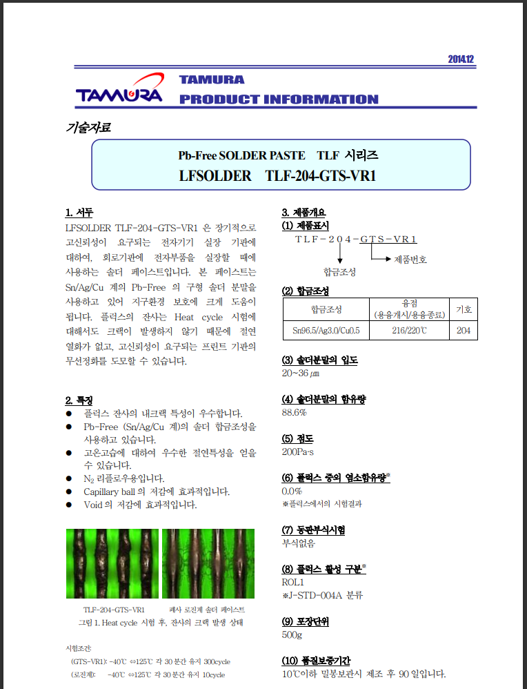 TAMURA Solder Paste - 다무라표준시험방법 | 2023-02-13 |